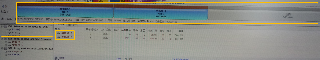- 两个硬盘的分区表类型(此时都为MBR):