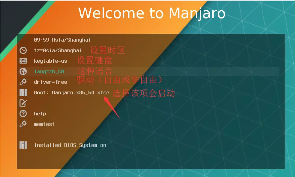 下图是示意图,我们选的是manjaro的ISO文件