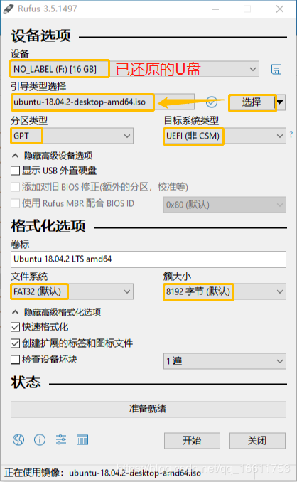 用Rufus制作Ubuntu18.04 U盘启动盘