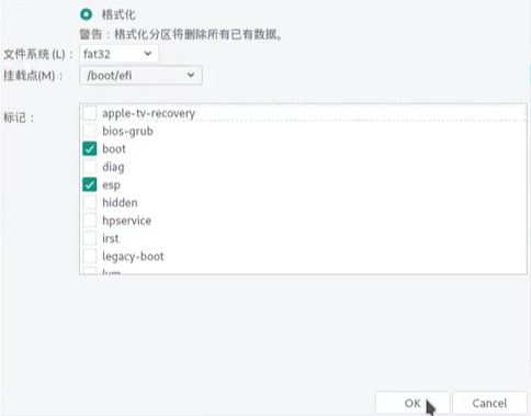 这时不要把/boot/efi单独分区,直接在挂载挂载在win10的efi上,原因可以参考这篇文章,具体操作: