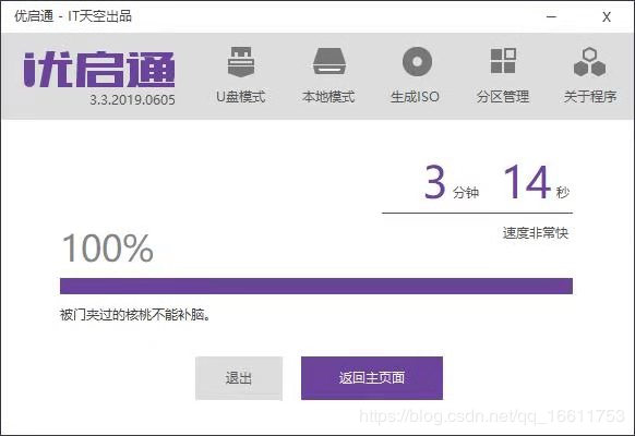 插入U盘,写入,等待完成。各项参数如下: