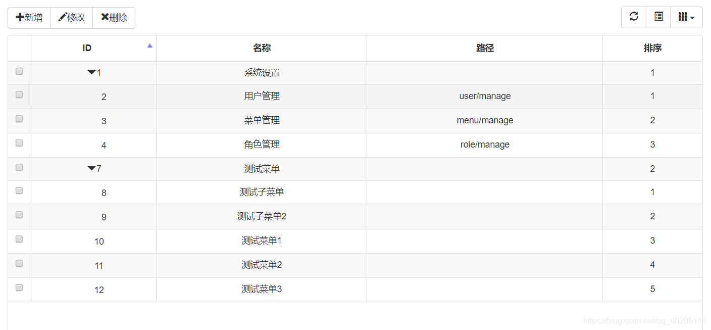 方法中TbMenuForm接收类,中字段和实体类差不多。代码如下。