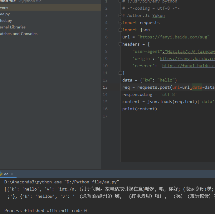'cookie':'BAIDUID=99F969B069734A781D1E63323745B70C:FG=1; BIDUPSID=99F969B069734A781D1E63323745B70C; PSTM=1571648519; Hm_lvt_64ecd82404c51e03dc91cb9e8c025574=1575984028,1576191898,1576535842,1577277048; from_lang_often=%5B%7B%22value%22%3A%22fin%22%2C%22text%22%3A%22%u82AC%u5170%u8BED%22%7D%2C%7B%22value%22%3A%22zh%22%2C%22text%22%3A%22%u4E2D%u6587%22%7D%2C%7B%22value%22%3A%22en%22%2C%22text%22%3A%22%u82F1%u8BED%22%7D%5D; to_lang_often=%5B%7B%22value%22%3A%22en%22%2C%22text%22%3A%22%u82F1%u8BED%22%7D%2C%7B%22value%22%3A%22zh%22%2C%22text%22%3A%22%u4E2D%u6587%22%7D%5D; REALTIME_TRANS_SWITCH=1; FANYI_WORD_SWITCH=1; HISTORY_SWITCH=1; SOUND_SPD_SWITCH=1; SOUND_PREFER_SWITCH=1; APPGUIDE_8_2_2=1; H_PS_PSSID=1464_21089; BDORZ=FFFB88E999055A3F8A630C64834BD6D0; delPer=0; PSINO=2; Hm_lpvt_64ecd82404c51e03dc91cb9e8c025574=1577277355; __yjsv5_shitong=1.0_7_4f5f7b04879b373bc8ed2b4d5c5b66686e4f_300_1577277355646_113.213.3.250_132152c2; yjs_js_security_passport=e50a3da34c59eb63c657a67fcb333dbd8b295fea_1577277356_js; BDRCVFR[Hp1ap0hMjsC]=mk3SLVN4HKm'