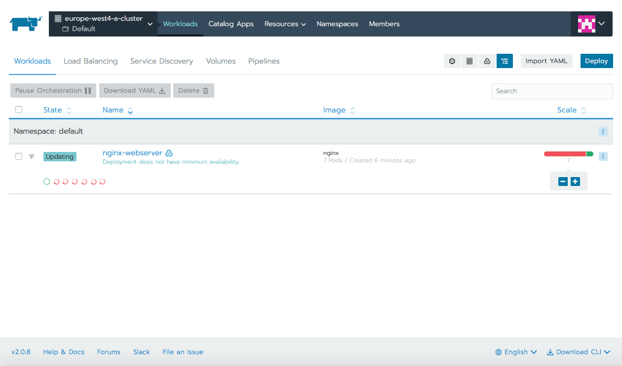 虽然是Rancher向我们展示了“协调集群”,但其实是Kubernetes在幕后升级集了群主服务器并调整节点池的大小。