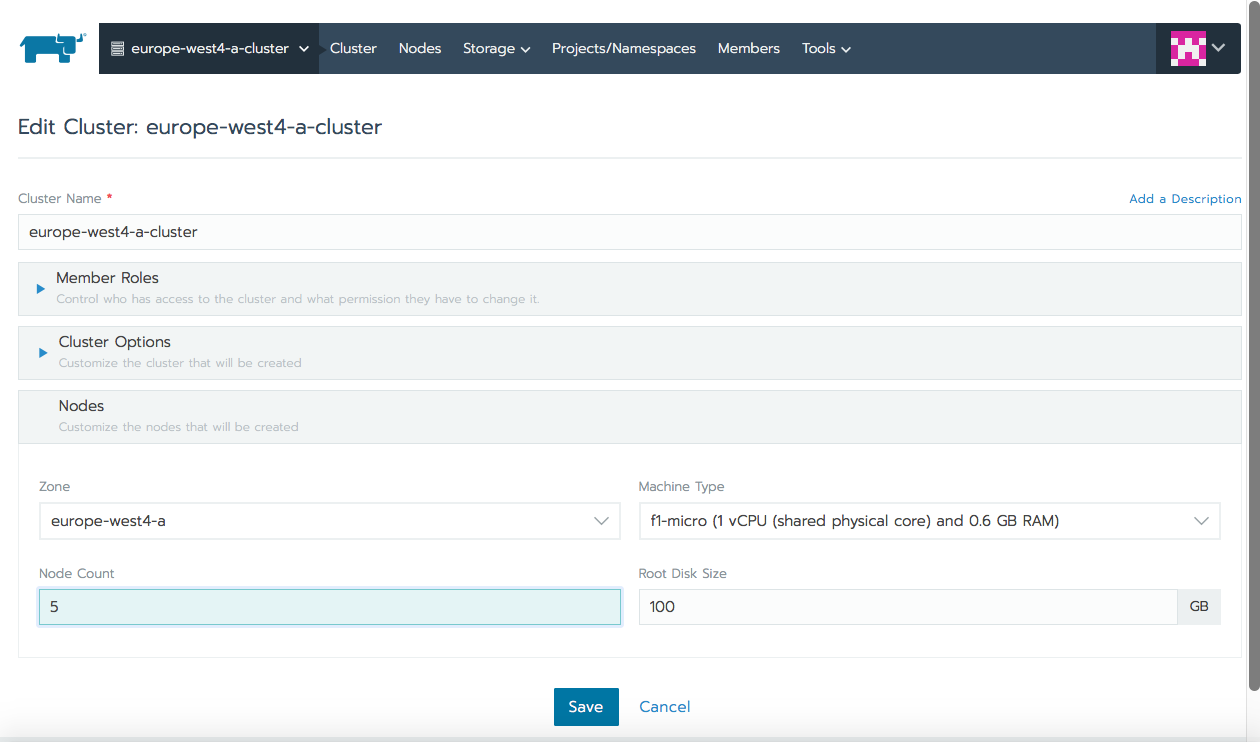 通过Rancher,我们还可以通过添加额外的节点来扩展集群。下面尝试这样做一下,让我们将节点数编辑为5。