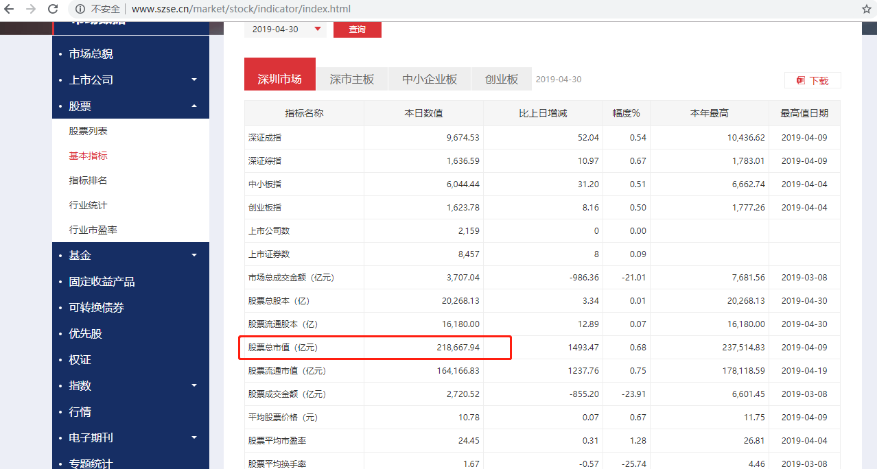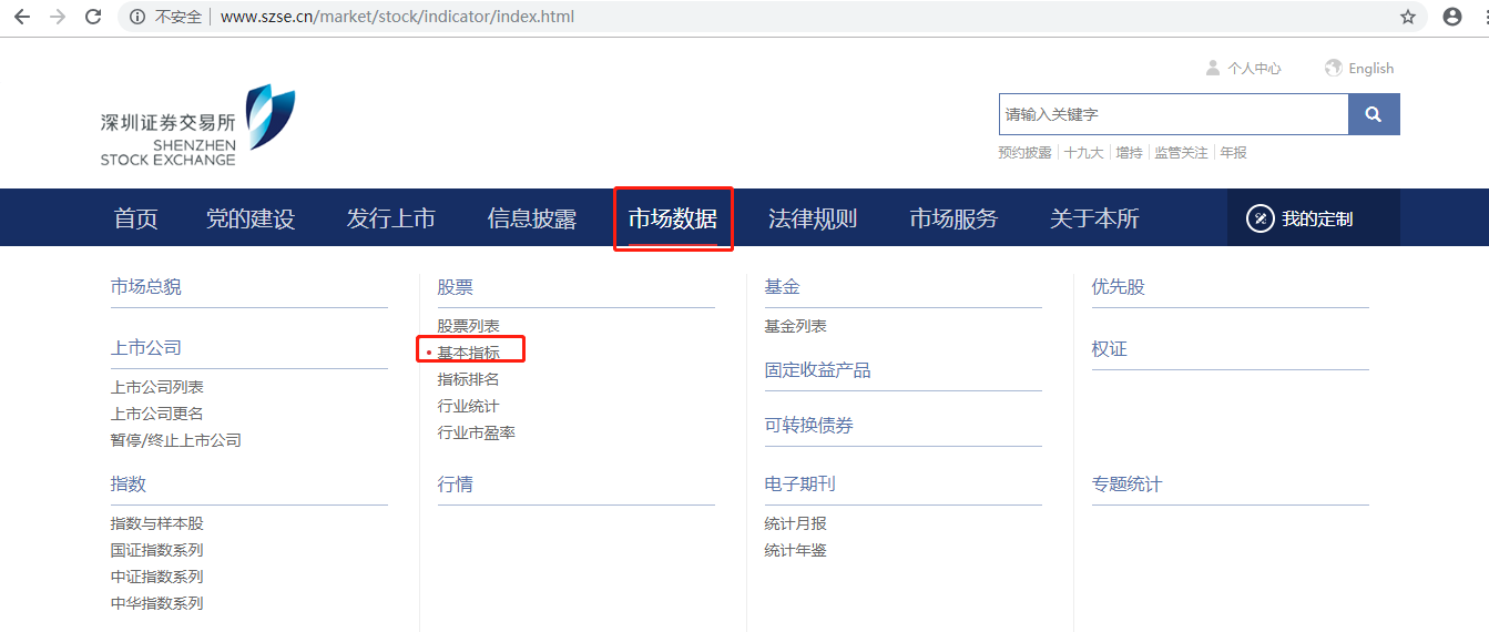 2.百度搜索“深证证券交易所”,进入官网,点“市场数据-基本指标”