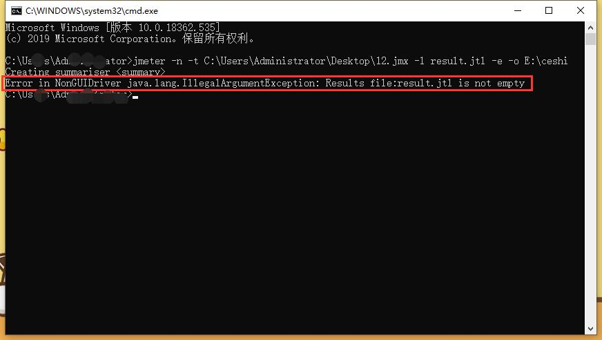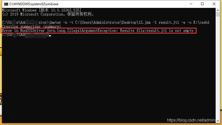 报错:Error in NonGUIDriver java.lang.IllegalArgumentException: Results file:result.jtl is not empty