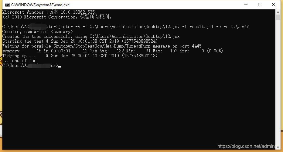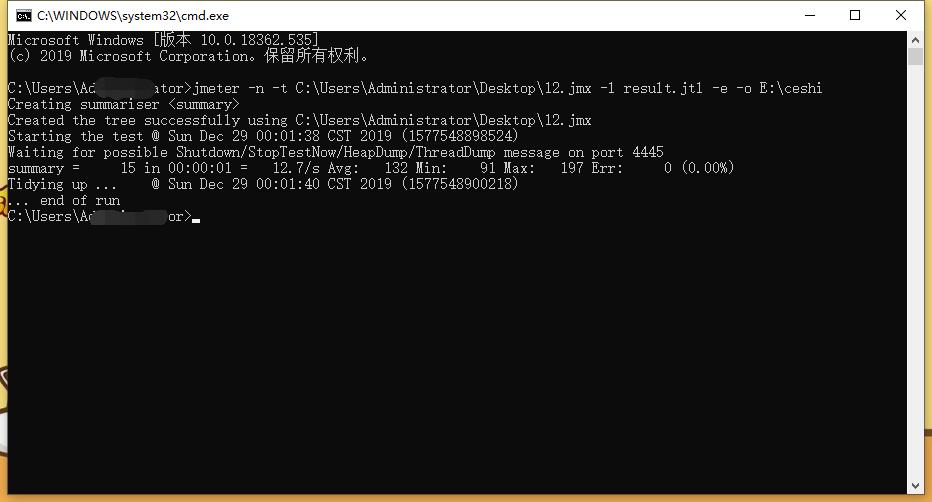 然后,重现运行cmd命令,输入:jmeter -n -t xxxxx.jmx -l result.jtl -e -o xxxxx