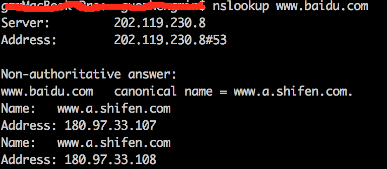 在Linux和window都可以用nslookup命令来查询域名的解析结果,如下图: