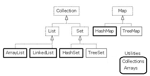 我们先看一下HashSet和TreeSet在整个集合框架中的位置。他们都实现了Set接口。他们之间的区别是HashSet不能保证元素的顺序,TreeSet中的元素可以按照某个顺序排列。他们的元素都不能重复。