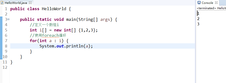 for(int a : i)foreach没有去从新弄个关键字,而是用的for这个关键字,然后括号中写的就是要遍历的对象。