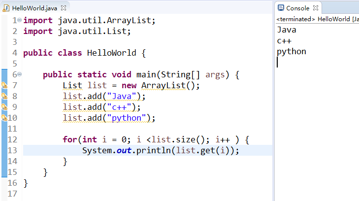 相同的,它也可以使用for循环,利用.get(i) 获取到该位置下的值。