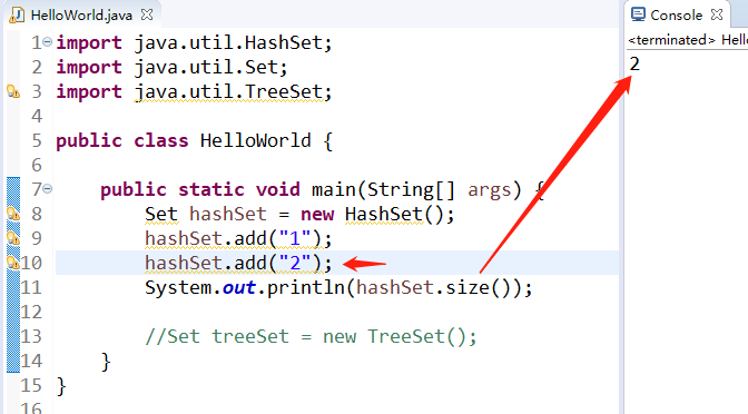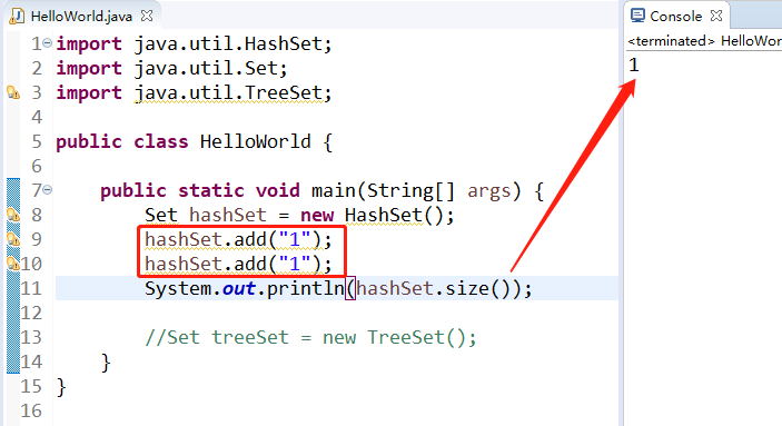而且,Set集合中不会存在两个相同的值。等一下我们来比对。