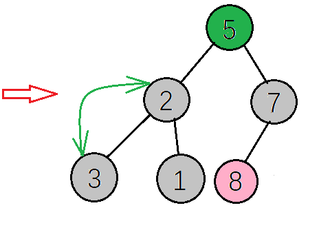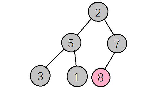 8只有一个左子树,左子树的值为2,8>2不需要调整