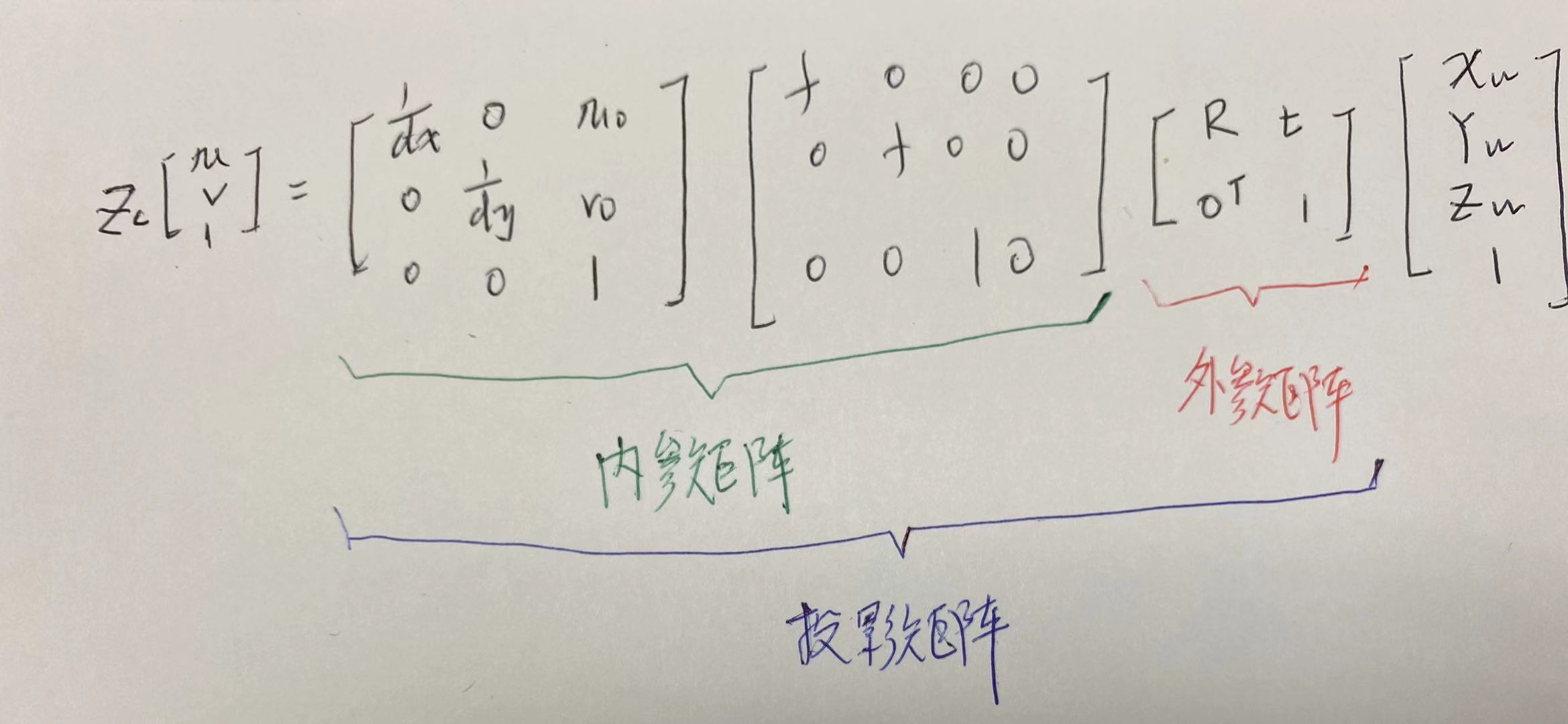 相机坐标系与世界坐标系之间的关系可以用旋转矩阵与平移向量来描述。