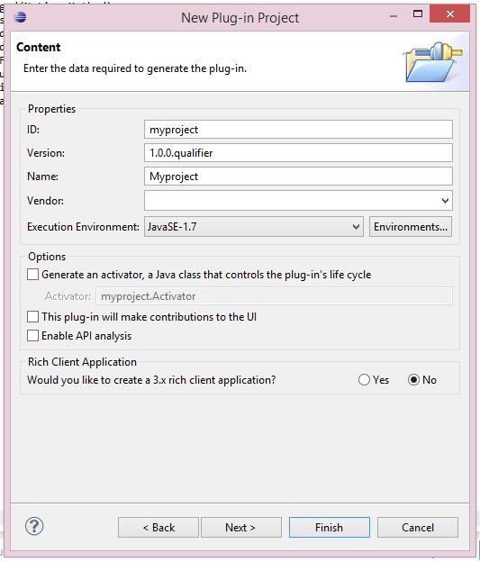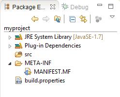 At this moment all wizard features were disabled and I press Finish button. As a result, Eclipse creates nearly empty project with MANIFEST.MF and build.properties files only.