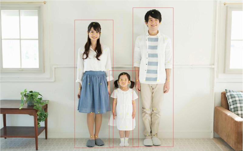 检测图像中的人体并返回人体矩形框位置,精准定位21个核心关键点,包含头顶、五官、颈部、四肢主要关节部位,支持多人检测、大动作等复杂场景
