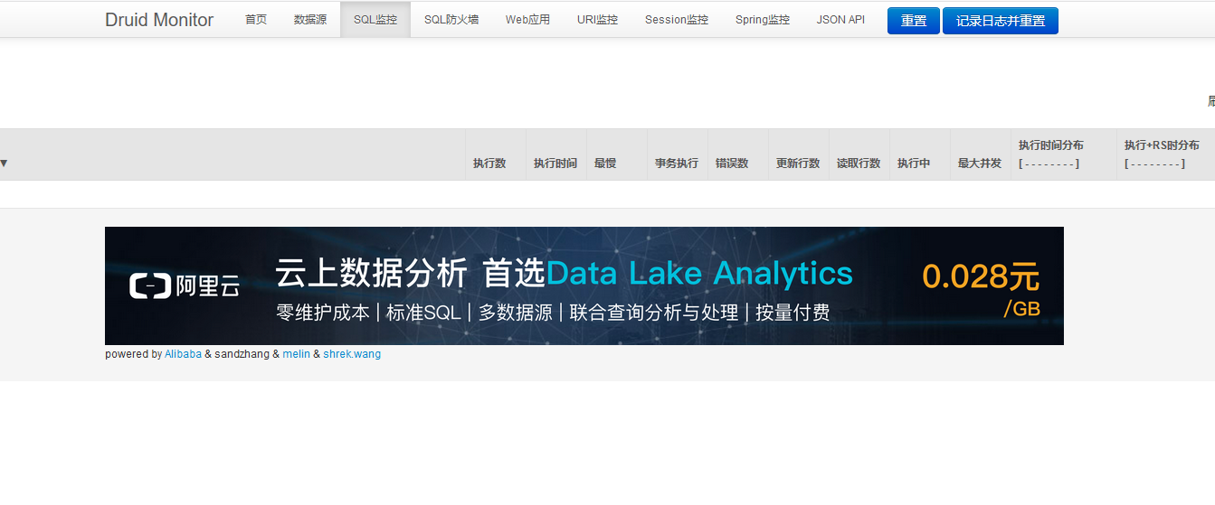 经过检查,是少配了参数, <property name="filters" value="stat" />属性没加,不然无法显示SQL检测信息。