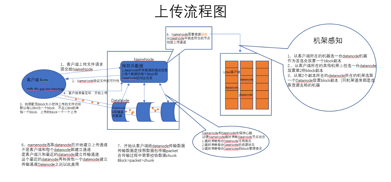 - 文件切分。文件上传HDFS时,Client会将文件切分成一个个Block,然后再上传