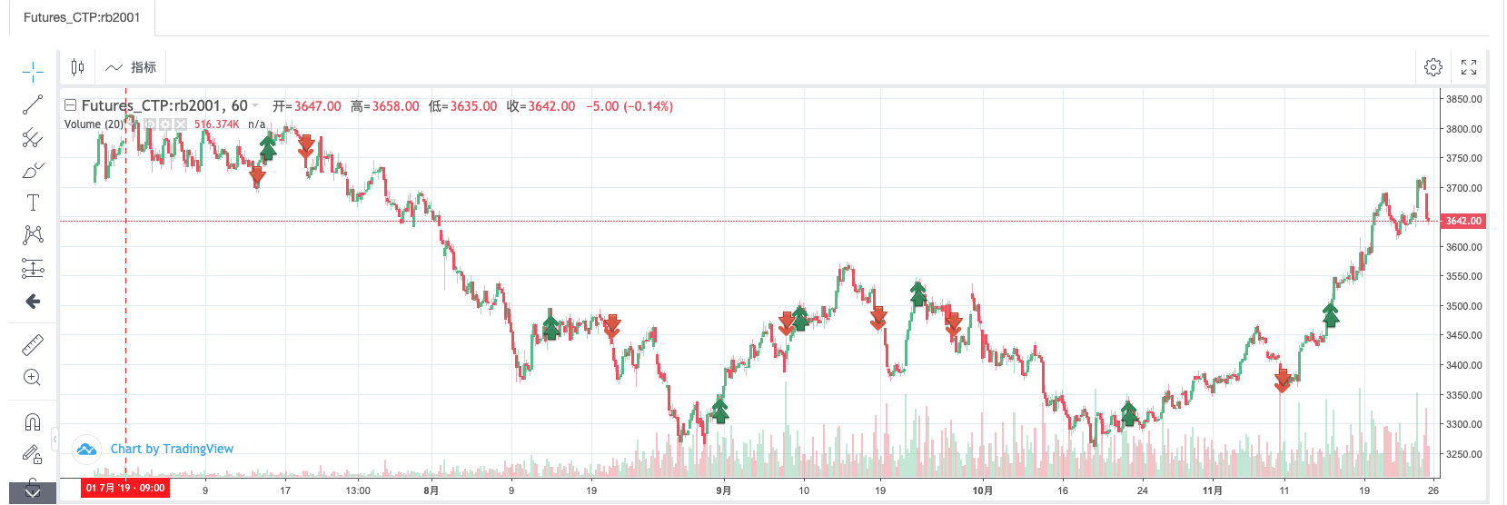 exchange.Buy(records[-1].Close + 2, 1) # 根据当前价格,加两跳(对于rb这个品种来说)吃单,下单量为1手,exchange.Buy 下单函数,第一个参数为价格,第二个参数为下单量