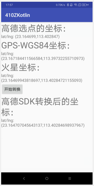android:text="高德SDK转换后的坐标:" />