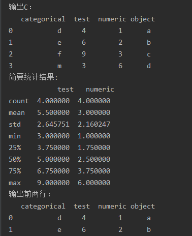 print('简要统计结果: \n', c.describe()) # 统计结果