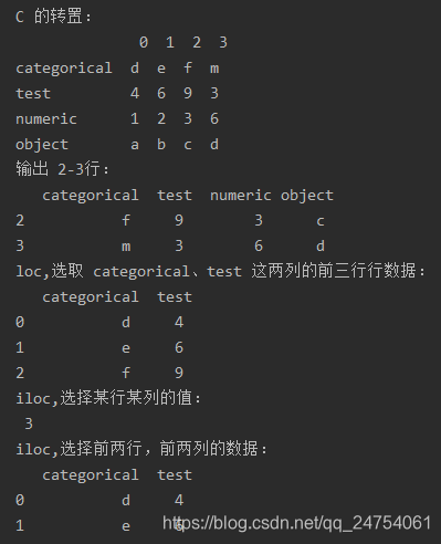 print('iloc,选择某行某列的值:\n', c.iloc[2,2]) # iloc[]方法的参数,必须是数值。