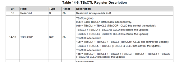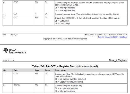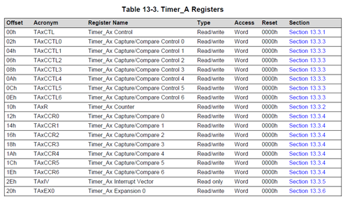 注意:并不是所有的Timer_A都有6个CCR寄存器,具体有几个看每个芯片的datasheet。