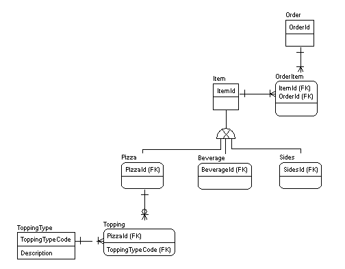 I could create a Toppings table and associate it to Product but not every product has a topping. For example, bread sticks, a diet soda, a salad, etc.
