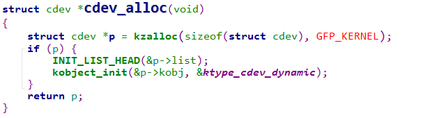 Linux内核提供了一组函数用于对cdev结构体的操作: