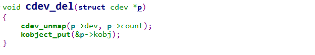 p:字符设备的cdev结构体指针
