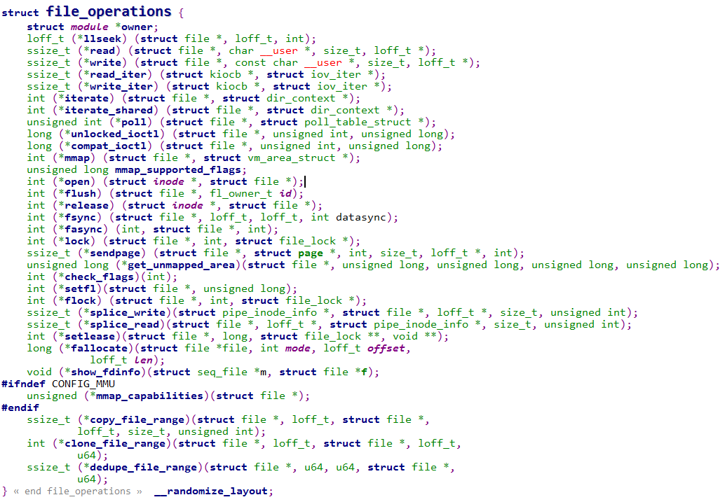 该file_operations结构体实例,通过cdev_init()函数与cdev进行连接。