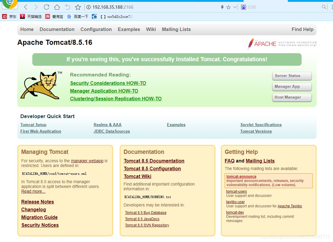 efb61d1b39e7 tomcat:centos "/usr/local/tomcat/b…" 11 seconds ago Up 10 seconds 0.0.0.0:2166->8080/tcp angry_poincare
