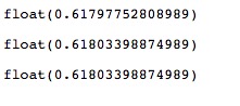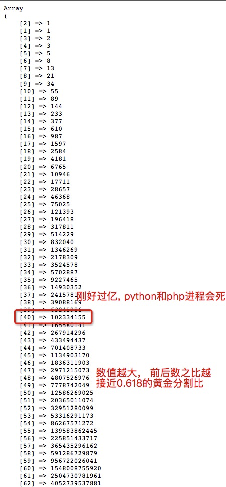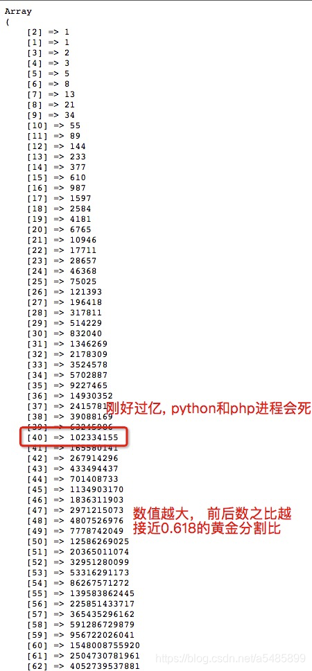 2、数值越大, 前后的两个数字之比越接近0.618