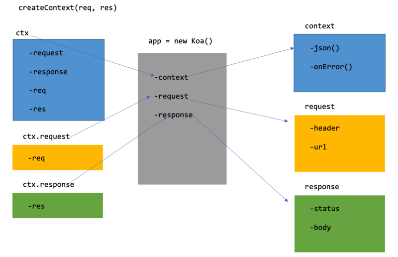 Koa使用了中间件的概念来完成对一个http请求的处理,同时,Koa采用了async和await的语法使得异步流程可以更好的控制。ctx执行上下文代理了原生的res和req,这让开发者避免接触底层,而是通过代理访问和设置属性。