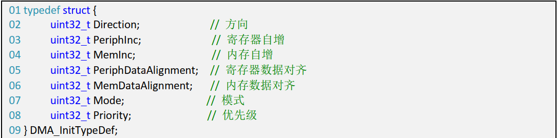 Direction:传输方向, 有三种, 分别是外设到存储器、 存储器到外设和存储器到存储器, 根据工程要求来选择三种传输方向。