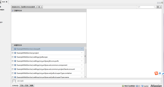 然后查看SourceTree,里面就有未保存的文件(如果没有,点击下日志/历史)点击“未暂存的文件”