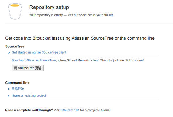 创建完可以用SourceTree复制代码进去,点击用SourceTree克隆