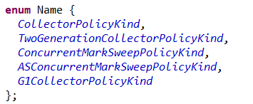 CollectorPolicy定义了一个枚举Name来描述子类的名称,如下: