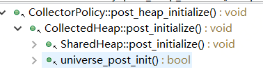 这三个方法都是用来构造并初始化CollectorPolicy,构造方法调用后就会调用initialize_all方法,当CollectedHeap初始化结束后就会调用post_heap_initialize对已初始化的参数做必要的更新。initialize_all和post_heap_initialize的调用链如下: