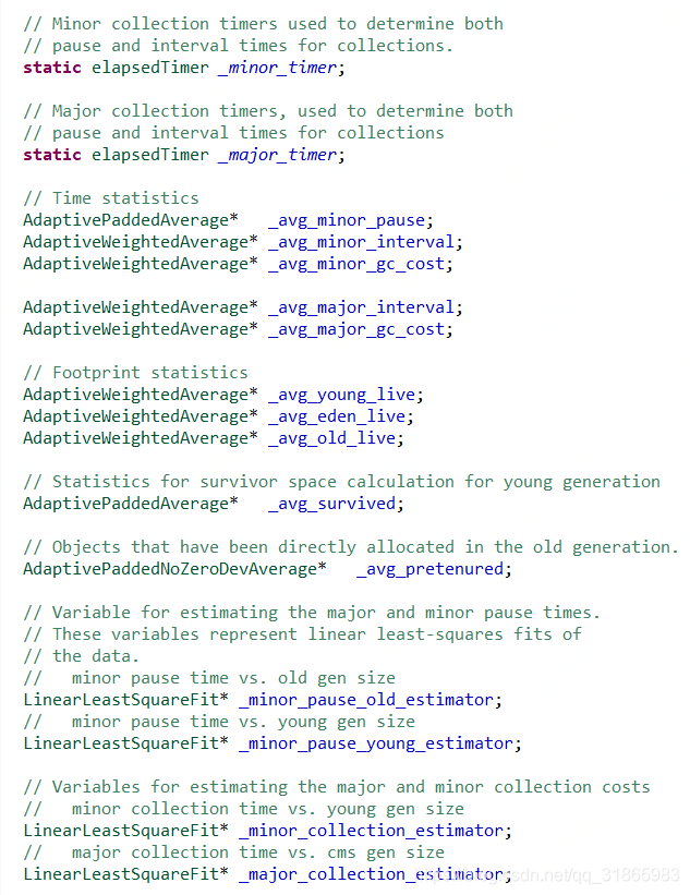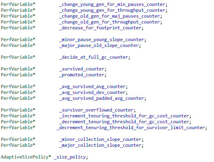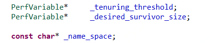 - GCPolicyCounters* _gc_policy_counters; //跟踪分代内存的性能的计数器