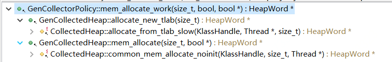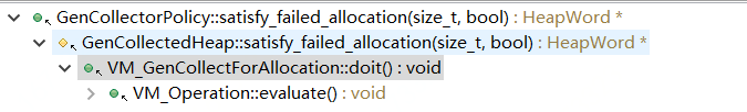 satisfy_failed_allocation就是上一个方法mem_allocate_work内存分配失败时执行GC的VM_GenCollectForAllocation的底层实现,该方法的调用链如下: