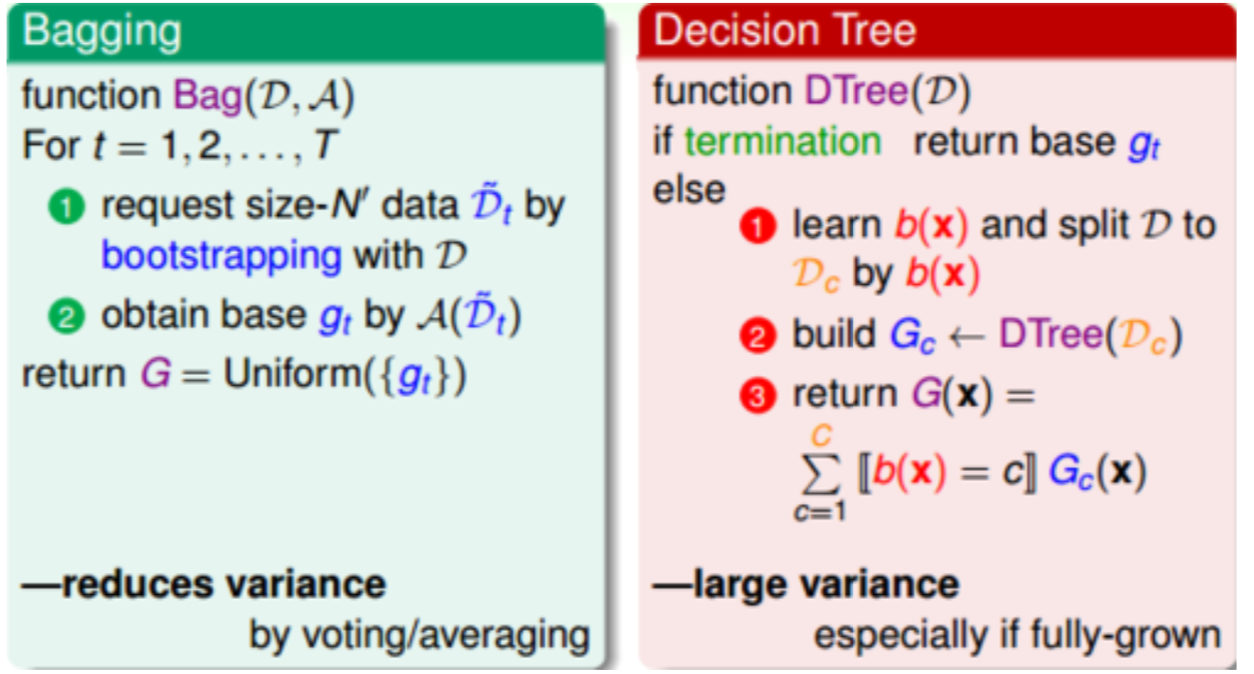 首先我们来复习一下之前介绍过的两个机器学习模型:Bagging和Decision Tree。 Bagging是通过bootstrap的方式,从原始的数据集D中得到新的