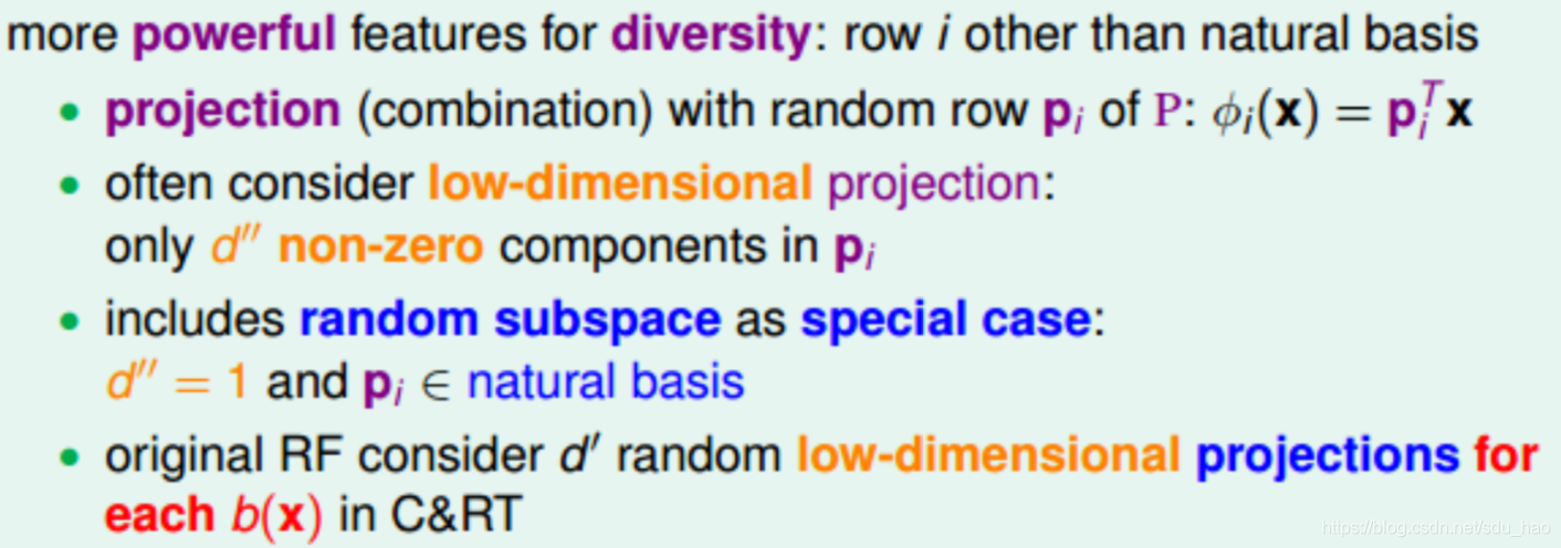 上面我们讲的是随机抽取特征,除此之外,还可以将现有的特征x,通过数组p进行线性组合,来保持多样性: