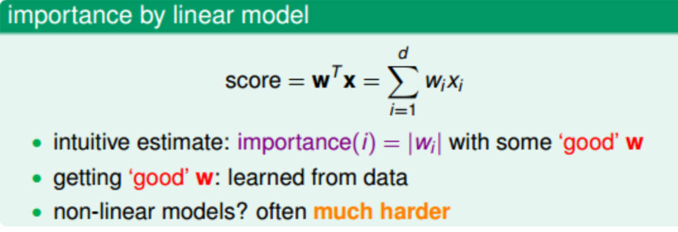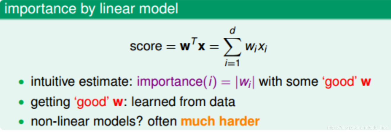 这种方法在线性模型中比较容易计算。因为线性模型的score是由每个特征经过加权求 和而得到的,而加权系数的绝对值