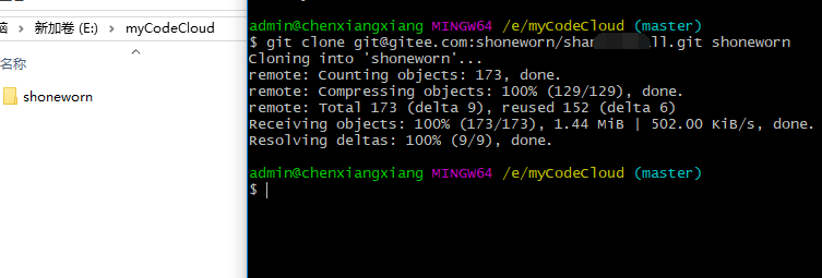 git clone git@gitee.com:shoneworn/***.git