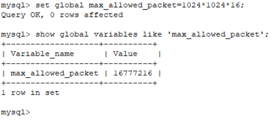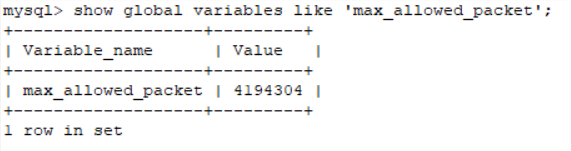show global variables like 'max_allowed_packet';