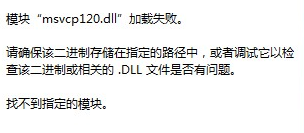 ② 运行regsvr32 msvcp120.dll加载失败错误提示: