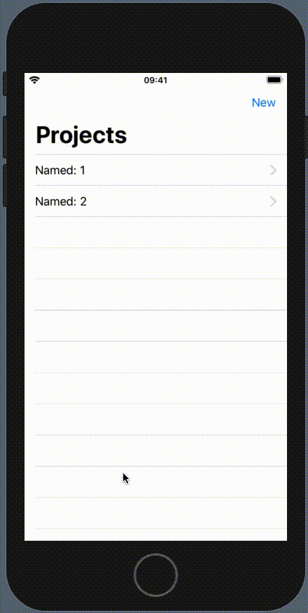 I have this code that works, that shows a list of projects. When one project is tapped, a binding to that project is passed to the child view: