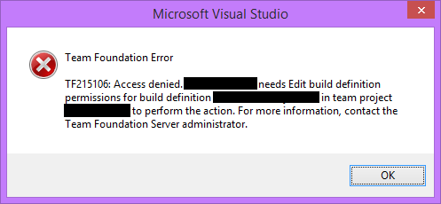 As a consequence, whenever a developer wants to edit a build definition (which is perfectly appropriate in our case) they keep running into: